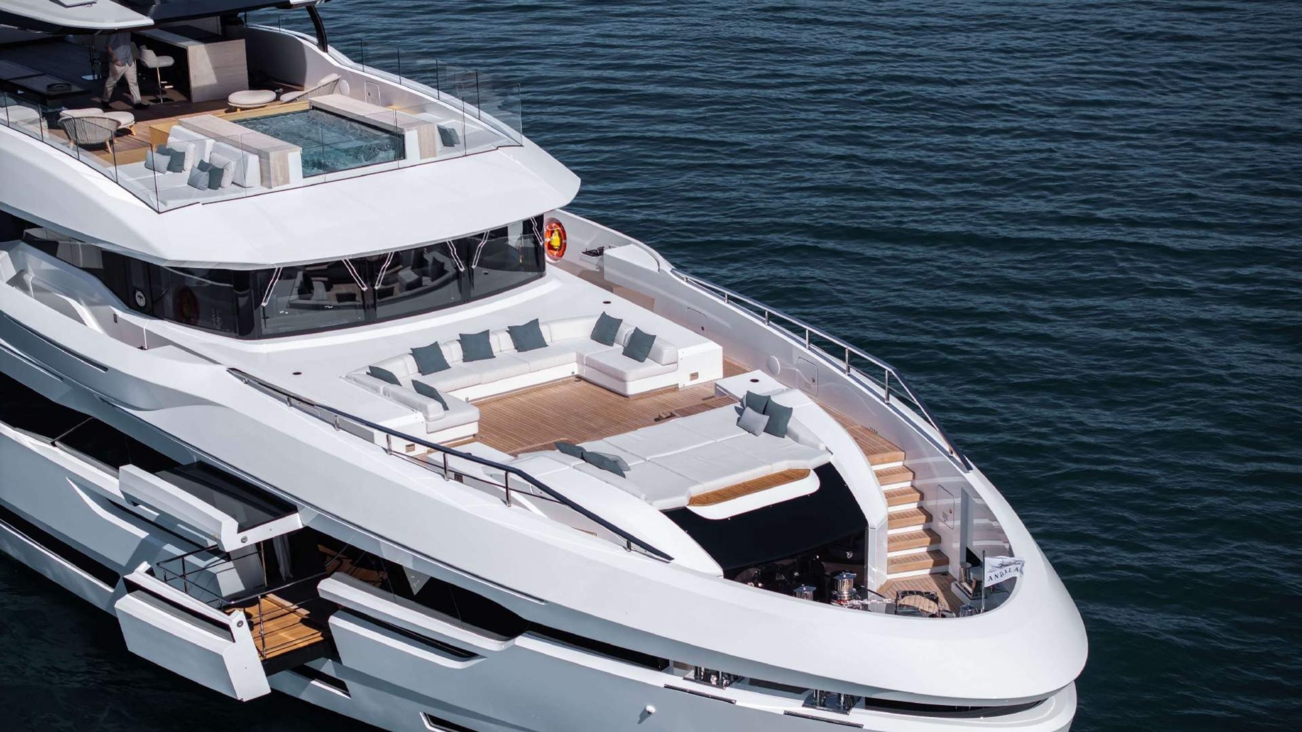 Il M/Y Andala DOM133 disponibile in pronta consegna presenta i tratti distintivi esterni della sua linea: un profilo slanciato e moderno definito da linee pulite ed una prua quasi verticale (near-plumb bow), che migliorano sia l’estetica che le prestazioni. L’esterno dello yacht fonde elementi di ispirazione automobilistica con precisione architettonica, dando vita a una silhouette dinamica e mascolina su quattro ponti. Costruito interamente in alluminio sia per lo scafo che per la sovrastruttura, Andala vanta una struttura leggera che contribuisce alla sua impressionante autonomia ed efficienza!