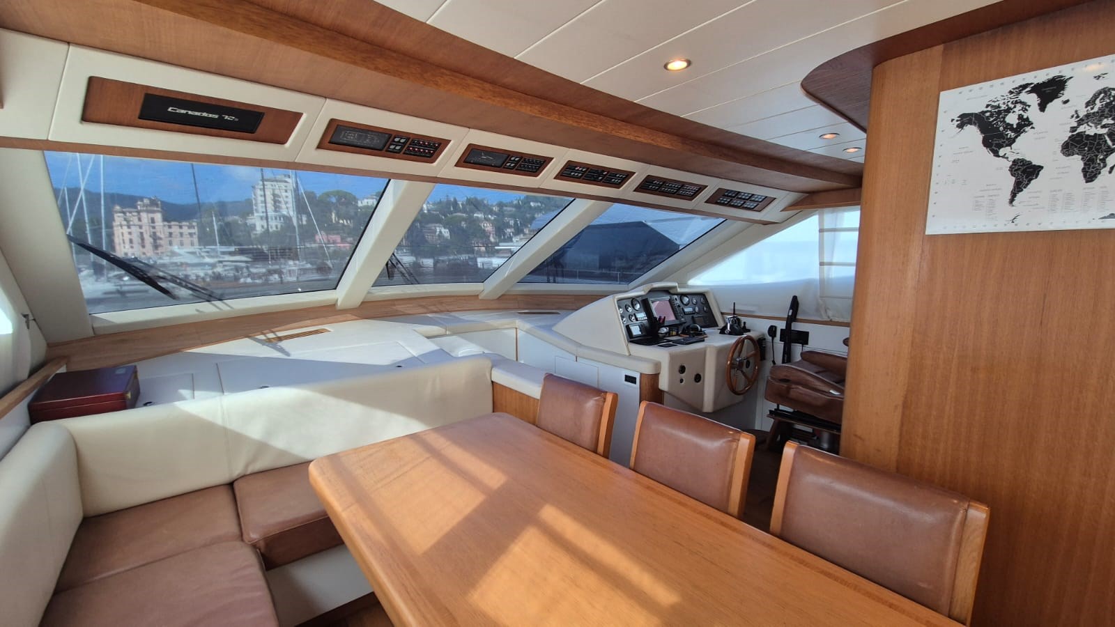 Il Canados 72 del 2005 è un raffinato flybridge di costruzione italiana che coniuga eleganza senza tempo, solidità strutturale e ottime prestazioni in navigazione. Progettato per offrire il massimo comfort a bordo, si distingue per gli ampi volumi interni, le finiture di pregio e una distribuzione degli spazi studiata per garantire vivibilità e privacy sia all’armatore che agli ospiti. Grazie alla qualità costruttiva del cantiere Canados e a una carena performante, questo modello garantisce una navigazione stabile, sicura e confortevole anche su lunghe percorrenze. Il Canados 72 rappresenta una soluzione ideale per chi cerca un’imbarcazione elegante, affidabile e versatile, perfetta sia per uso privato che per attività di charter.