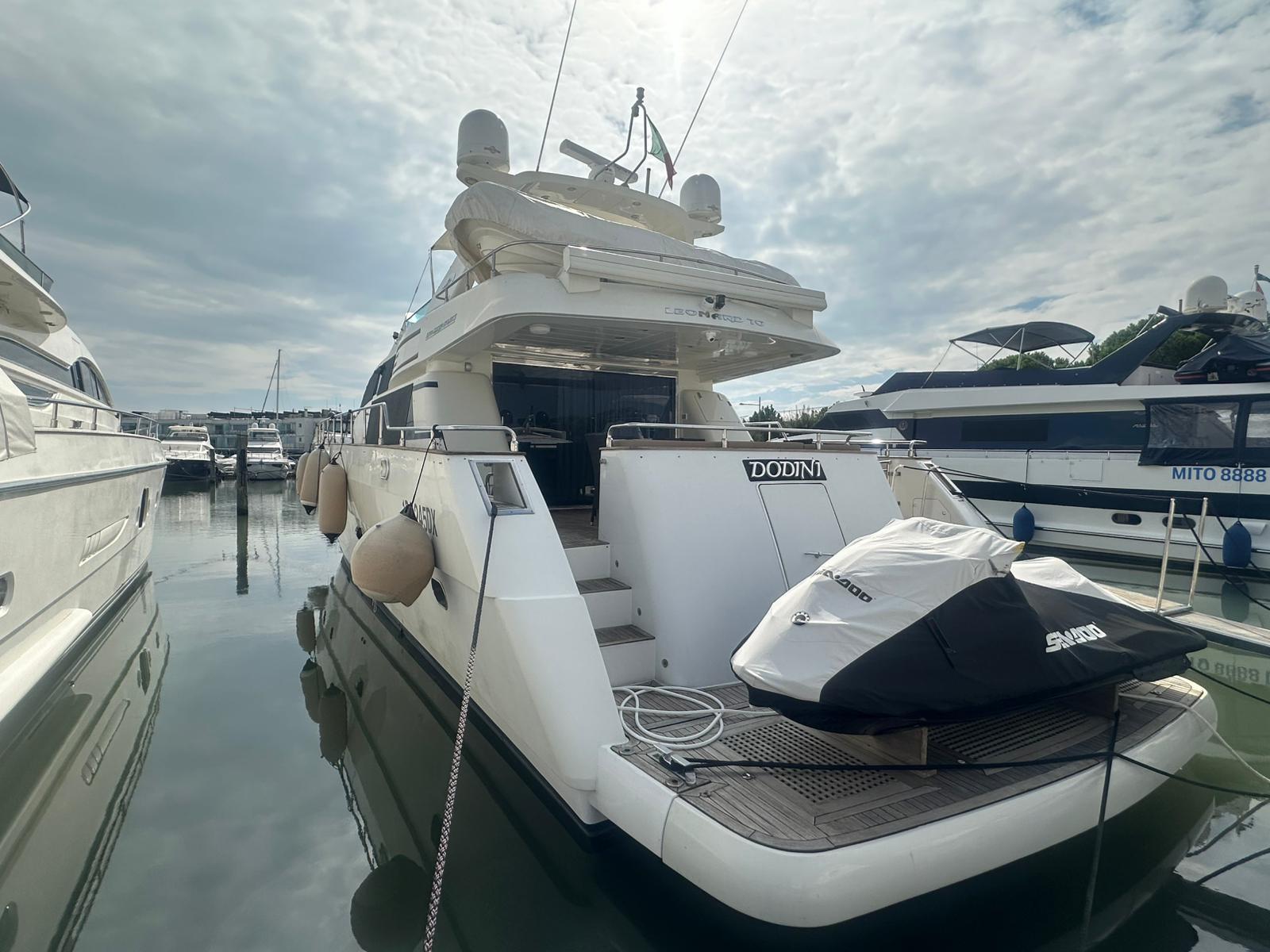 Il Leonard 70 è un flybridge di grande personalità, pensato per chi desidera coniugare eleganza, comfort e prestazioni durante le crociere più impegnative. Il suo profilo slanciato e le linee esterne raffinate raccontano una presenza scenica di primo piano, capace di attirare gli sguardi sia in rada sia durante la navigazione. All’interno, gli ambienti sono stati curati con attenzione e rifiniti per offrire spazi conviviali luminosi e accoglienti, ideali per momenti di relax in famiglia o con amici.