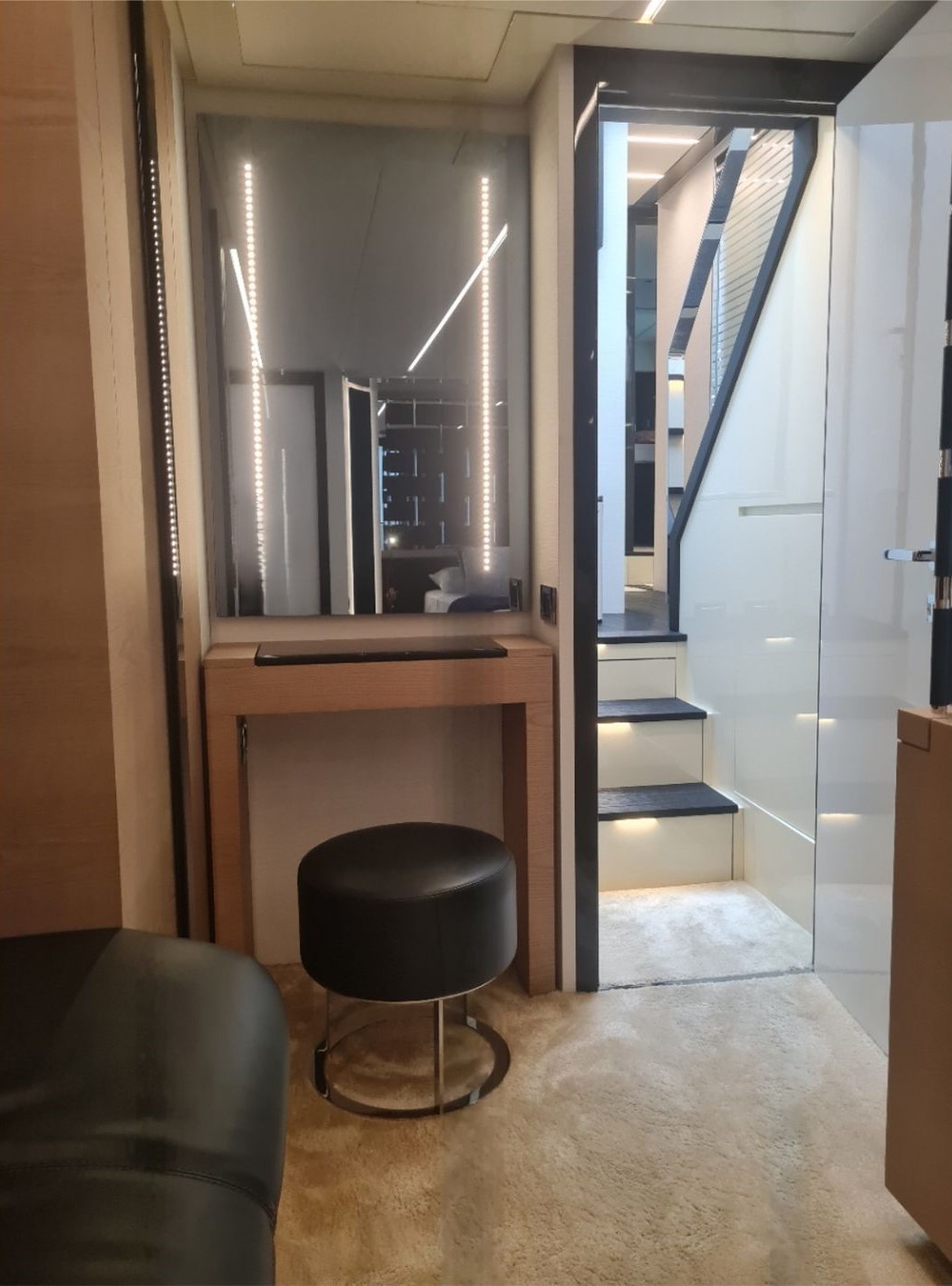 Lo yacht presenta linee fluide e sportive, tipiche della gamma Pershing, con un profilo aerodinamico che garantisce prestazioni eccellenti. L’interno offre un layout spazioso e ben organizzato, con cabine confortevoli e ampi spazi comuni. La qualità dei materiali e l’attenzione ai dettagli creano un ambiente raffinato e lussuoso. Il Pershing 70 è inoltre dotato di motori potenti che consentono di raggiungere velocità elevate, garantendo una navigazione agile e piacevole. L’imbarcazione è equipaggiata con sistemi di navigazione avanzati, che offrono un controllo preciso e una maggiore sicurezza in mare.