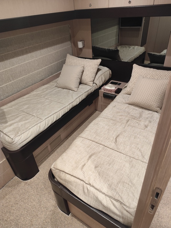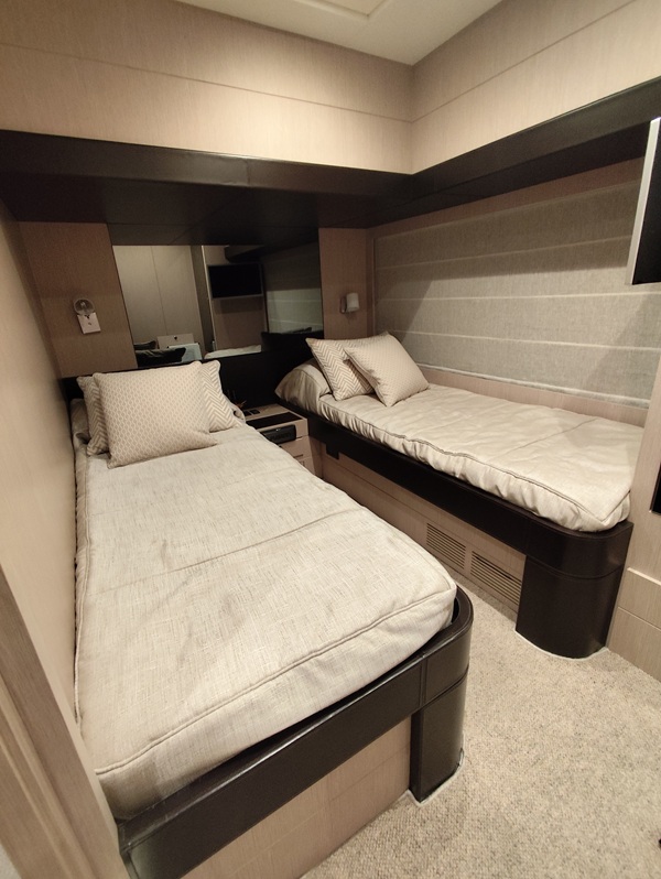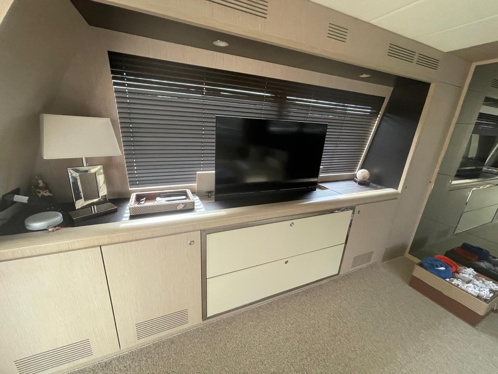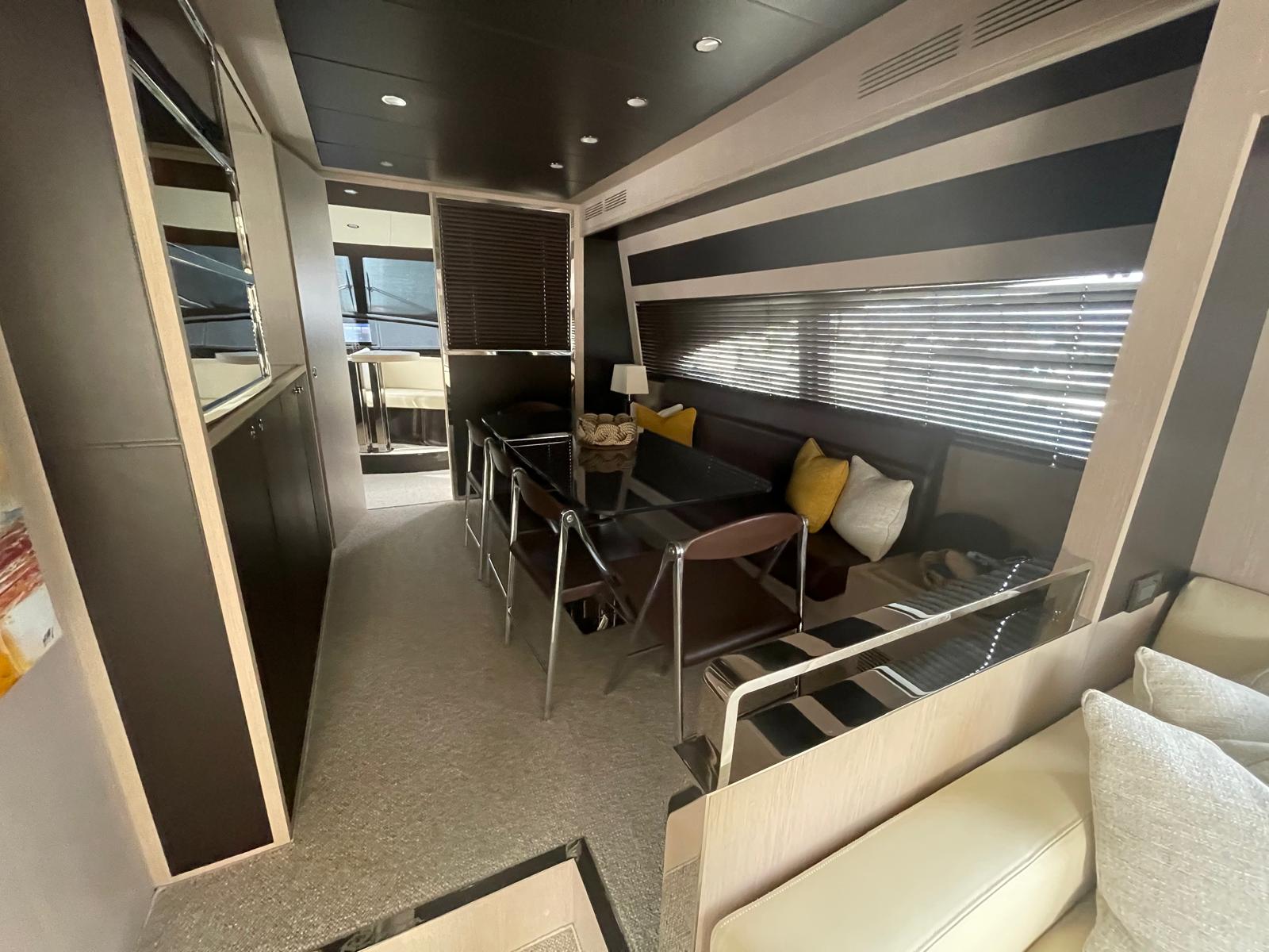 Con i suoi 23 metri di eleganza senza tempo, questo flybridge rappresenta una delle espressioni più raffinate dello stile Riva: sofisticato, potente senza compromessi, curato in ogni minimo dettaglio. Grandi vetrate con vista sul mare da poppa a prua rendendo il soggiorno a bordo un’esperienza unica, la sera punti luce e strisce LED creano l’atmosfera giusta per godersi un meritato relax!