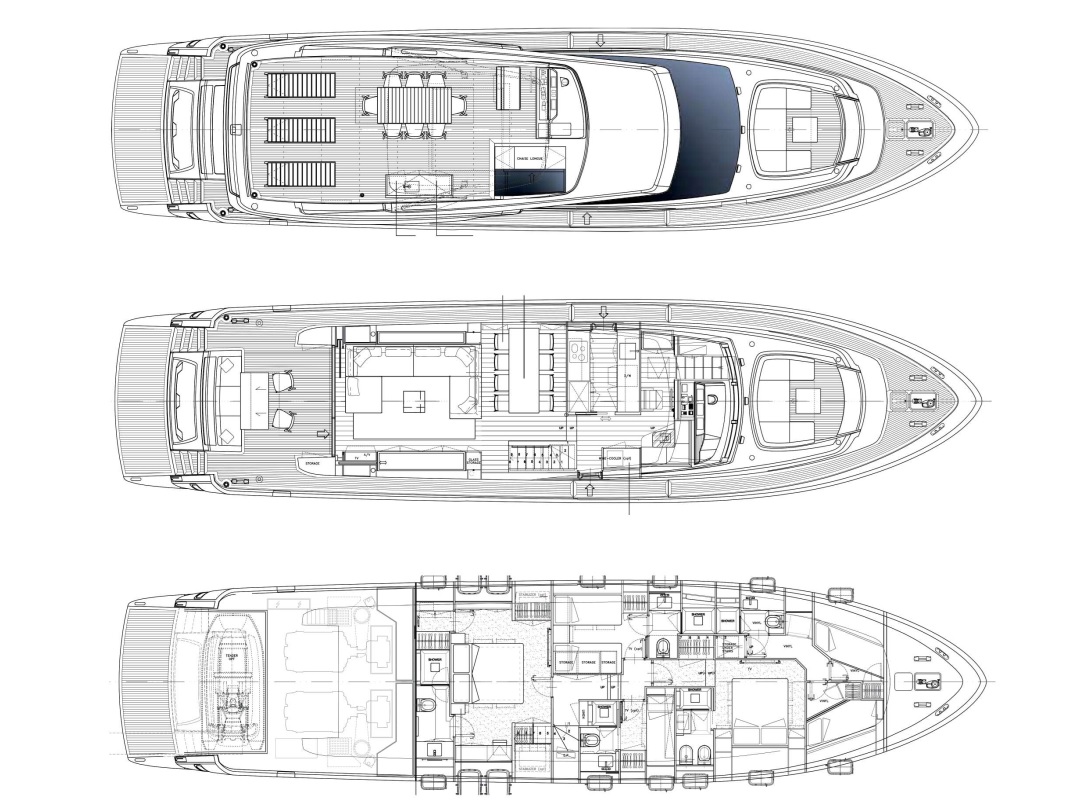 L’SL 78 si distingue in particolare per le sue linee eleganti e per gli spazi ampi e funzionali, sia in coperta che sottocoperta, ideali per trascorrere una vacanza all’insegna di relax e comfort. Gli esterni offrono un piacevolissimo comfort, il flybridge è il luogo ideale per rilassarsi e godersi la vista sul mare. Gli interni, ad opera di Officina Italiana Design, sono sofisticati e innovativi. Le grandi vetrate del salone rendono gli ambienti luminosi e accoglienti per un massimo di 8 ospiti in 4 splendide cabine tutte con bagno ensuite.