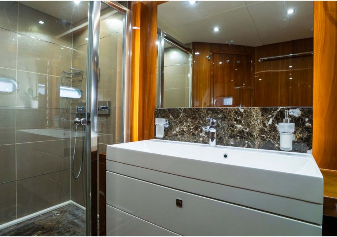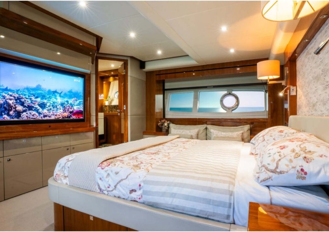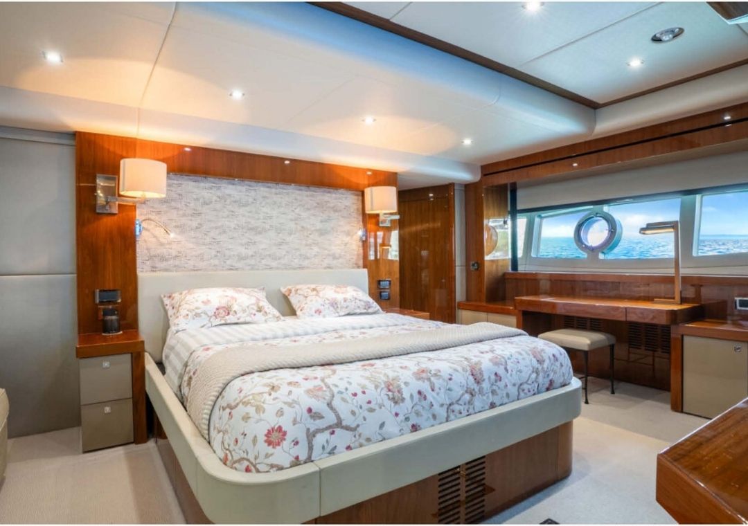 This model is a hallmark of the British shipbuilder Sunseeker, seamlessly blending style with nautical tradition. Generous sunbathing areas, a fully equipped flybridge, and four beautifully appointed cabins ensure maximum comfort and an exclusive cruising experience.